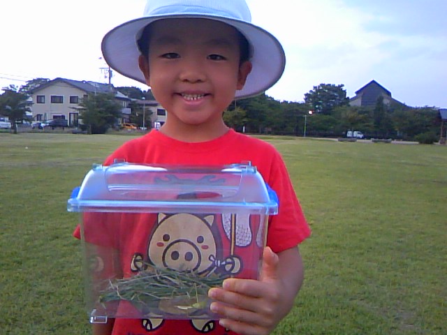 県民の森に行きました。晃成と泰成にそれぞれ虫かご購入。最後の方で、トノサマバッタにたくさん出会いました。晃成は満足です。泰成も虫に慣れてきたようで、じっくり観察していました。