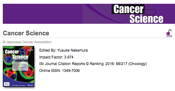 これが本当だとすると、かなりI.F.の高い雑誌に通ると思うのですが、Cancer Scienceということから、怪しい内容だと予想されます。いずれにしても、しっかりと読ませてもらってから、再度コメントを記載します。
